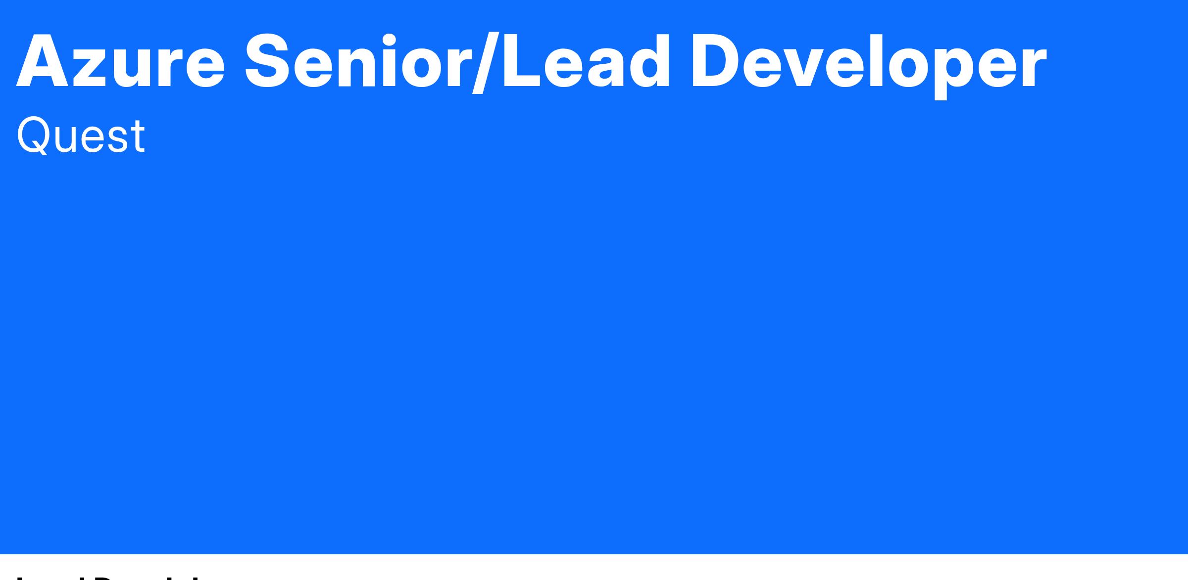 Come join us. For more information, visit us on the web at Quest Careers | Where next meets now. Join Quest.