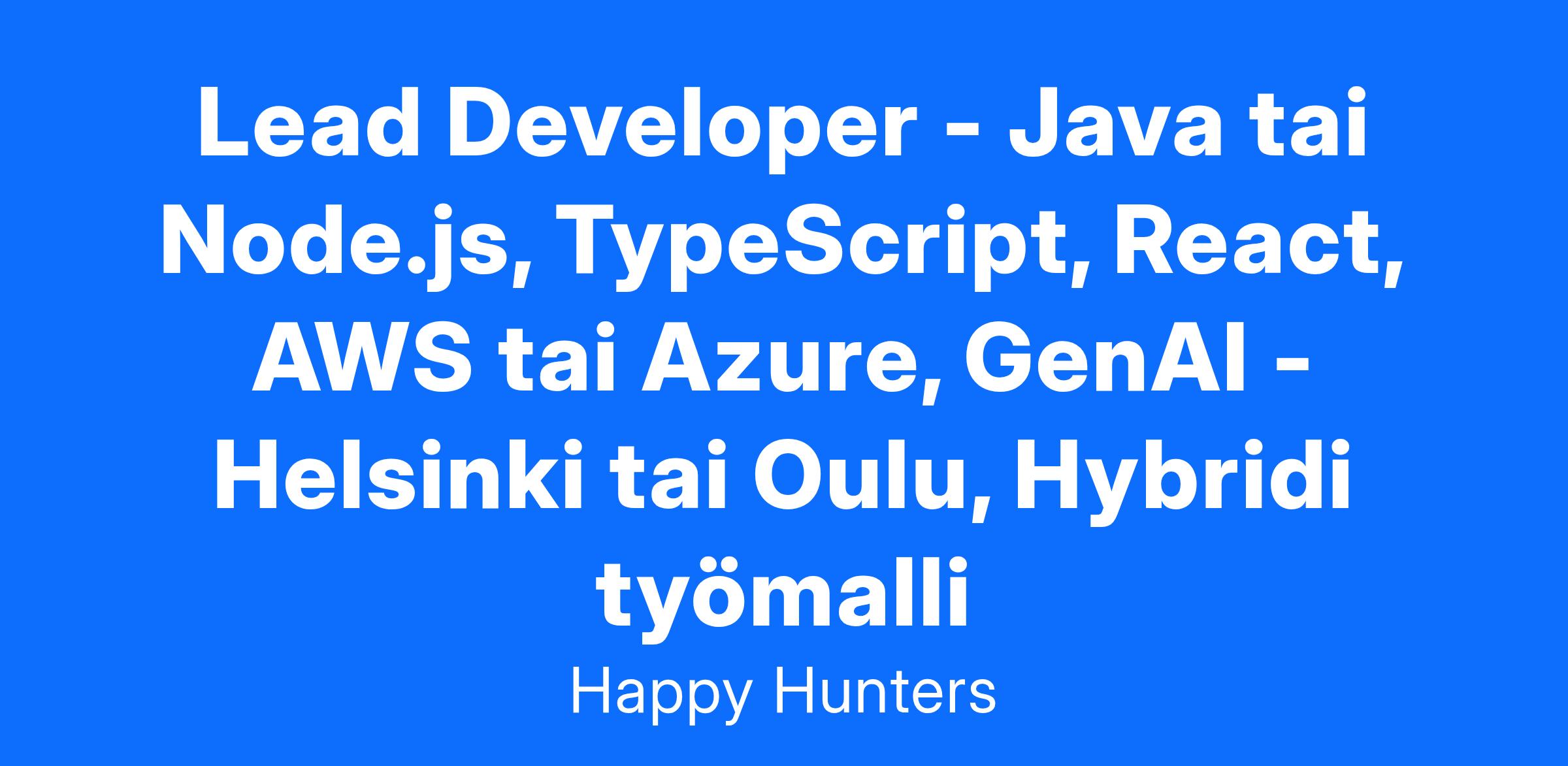 Lead Developer - Java tai Node.js, TypeScript, React, AWS tai Azure, GenAI - Helsinki tai Oulu, Hybridi työmalli