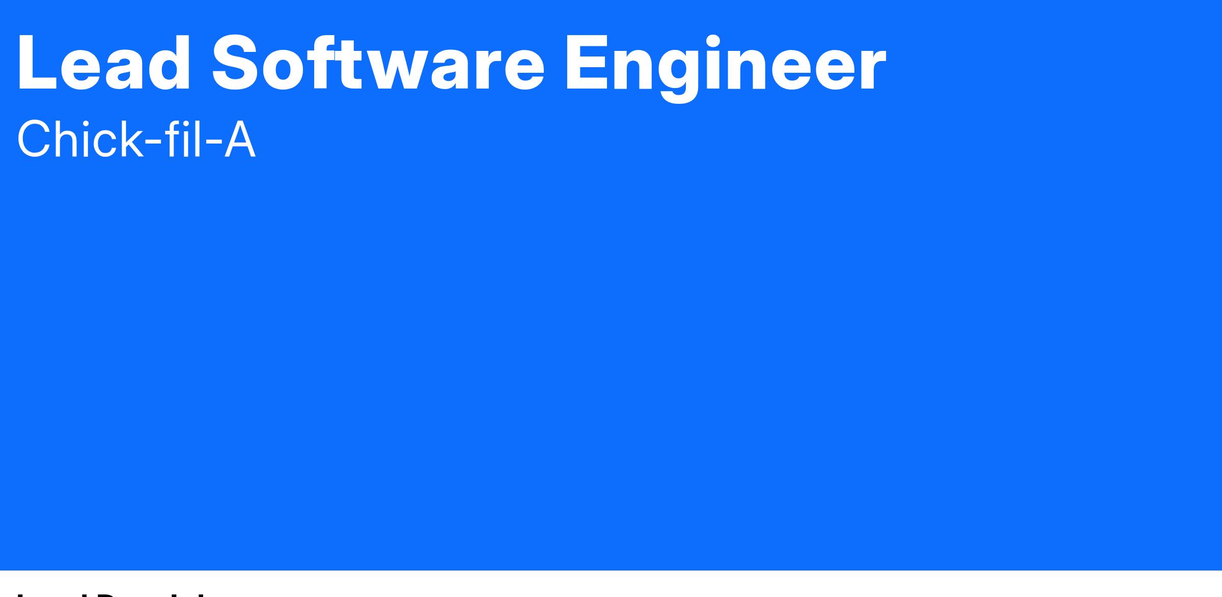 Ensuring our supply chain effectively meets the demands of our restaurants is key to enabling Chick-fil-A's continued growth. We are looking for a Lead Software Engineer to help us build and scale a mobile application that directly supports restaurant operations. This is a high-impact role for someone who is passionate about mobile technology, loves shipping great products, and is eager to mentor and lead a team of engineers.