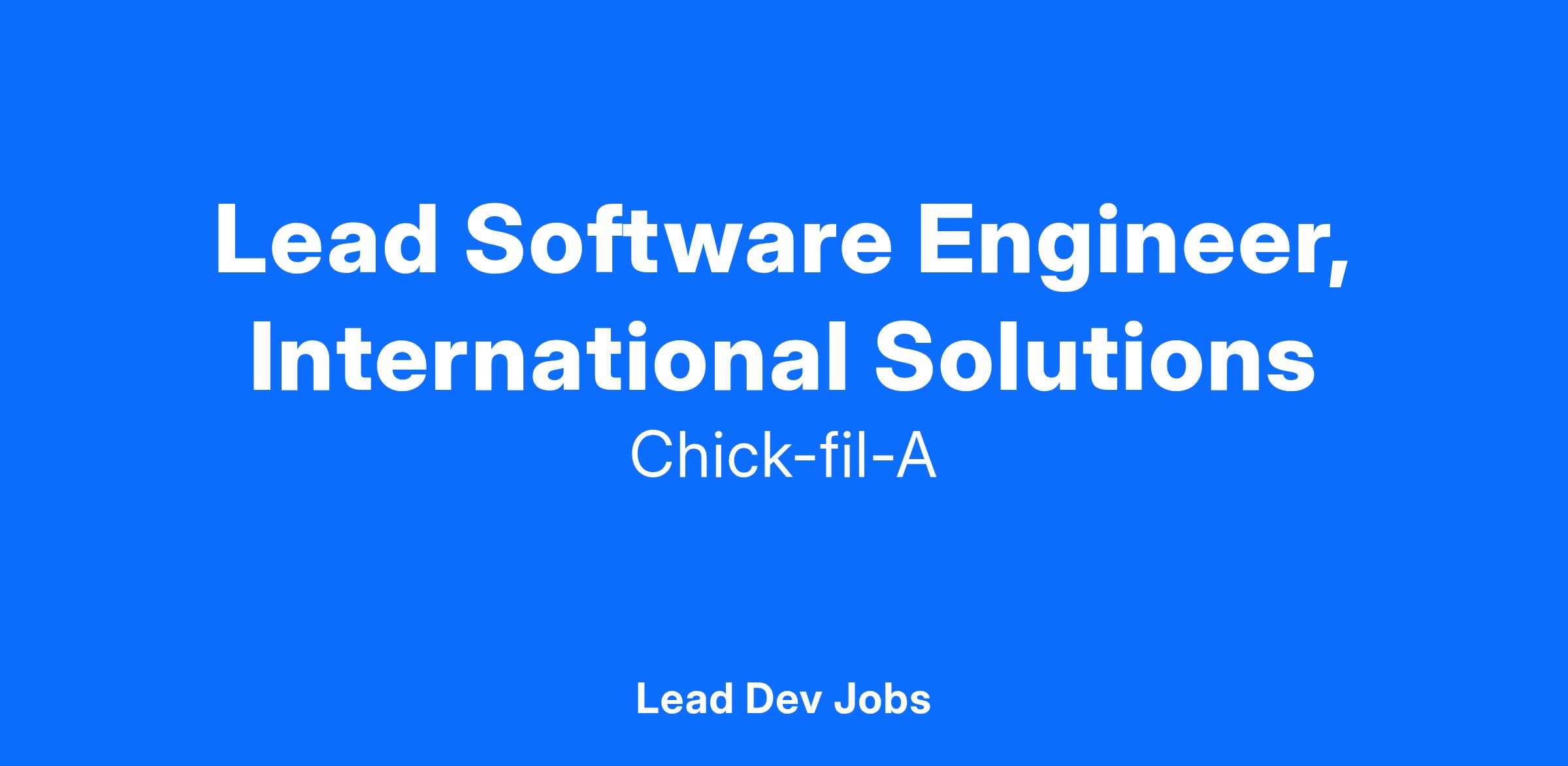 Chick-fil-A, Inc. has a stated intent to expand business interests in Canada, Puerto Rico and to the EMEA and APAC regions. As a result, Chick-fil-A is seeking a Lead Software Engineer to build custom solutions for our International Technology Strategy.
