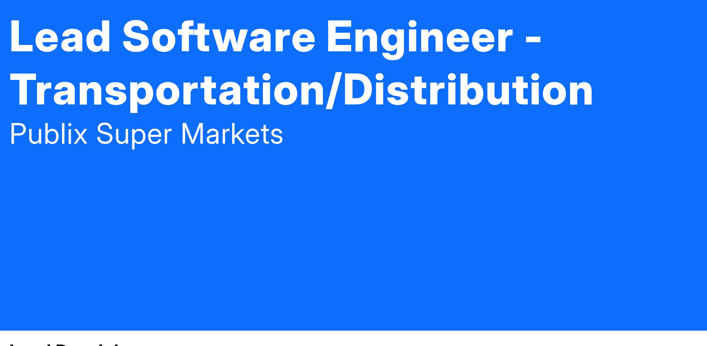 Join the Publix Transportation Systems Development Team βWhere Development is a Pleasureβ. Our team is growing, and we are looking for an experienced software engineer to add to our winning culture and track the record of delivering exceptional solutions to our users. This position will play a key role in interfacing enterprise teams to evaluate requirements, design solutions, and develop systems. The ideal candidate will possess strong analytical, planning, development, and problem-solving skills, and excel at communicating effectively with management, peers, technology vendors, and business customers.