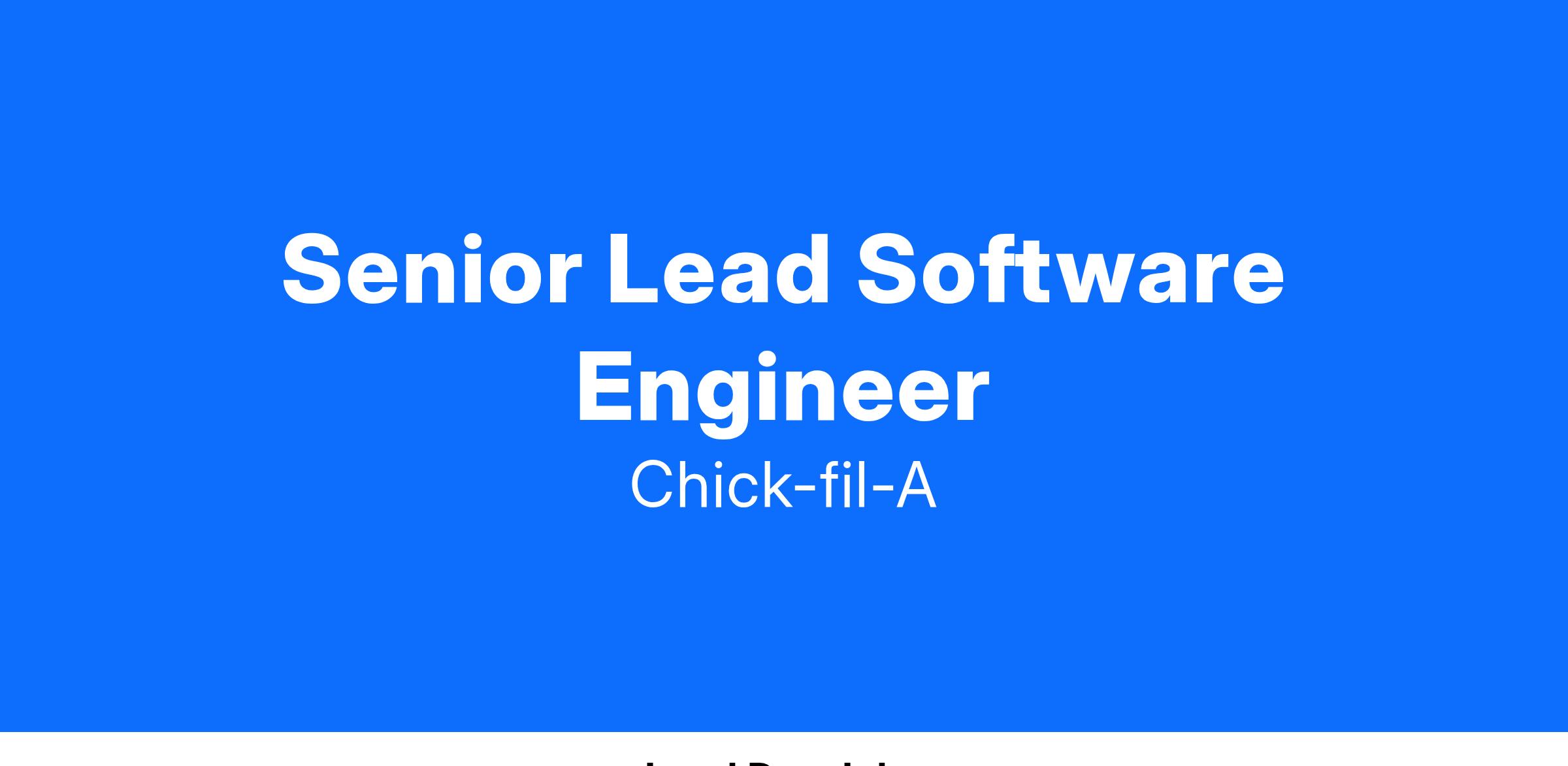 Chick-fil-A is looking for a Sr. Lead Software Engineer that will design, build, and support software for Chick-fil-A's Team Member Experience domain.